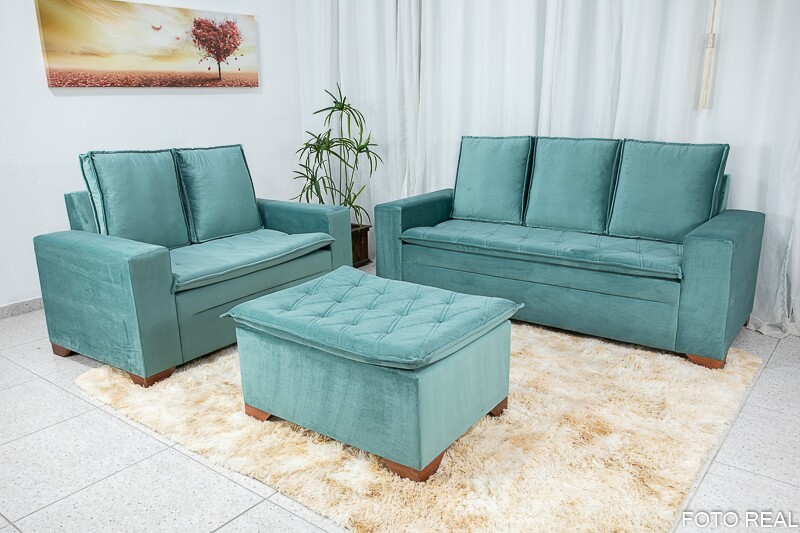Sofá 3 e 2 lugares França com Puff Veludo Verde A40 Larg. 1.86m