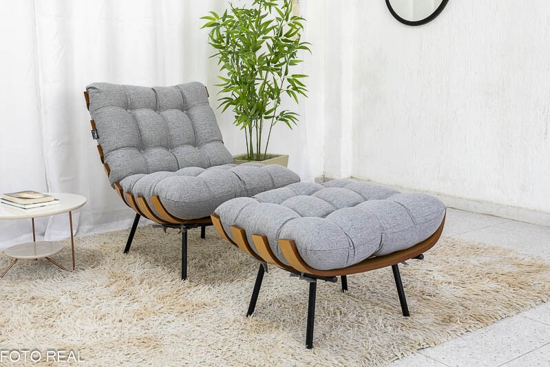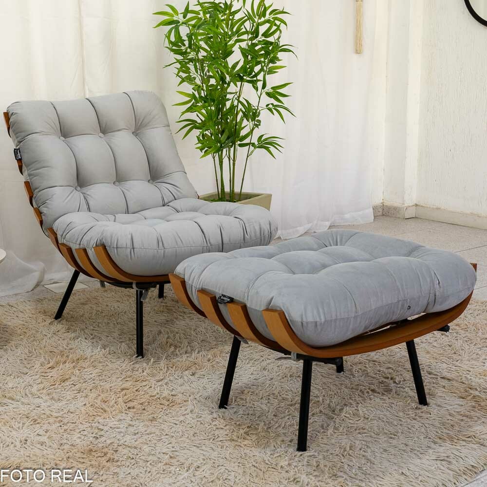 Poltrona Florença C/Puff Linho Cinza 1008 Larg. 0.68m