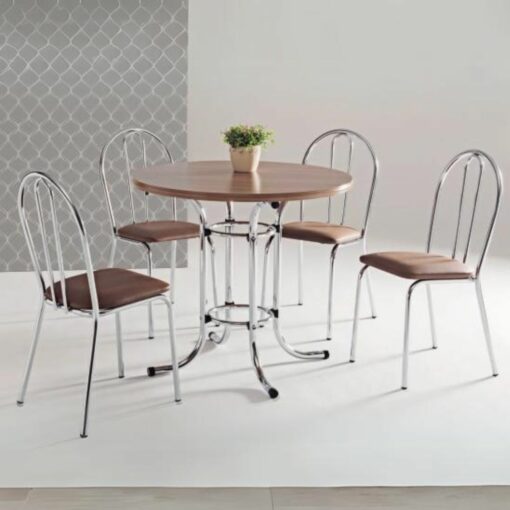 Conjunto Mesa Tubular Rio Marrom com 4 cadeiras Tampo Ardósia Circular Off White – 0,75×0,75