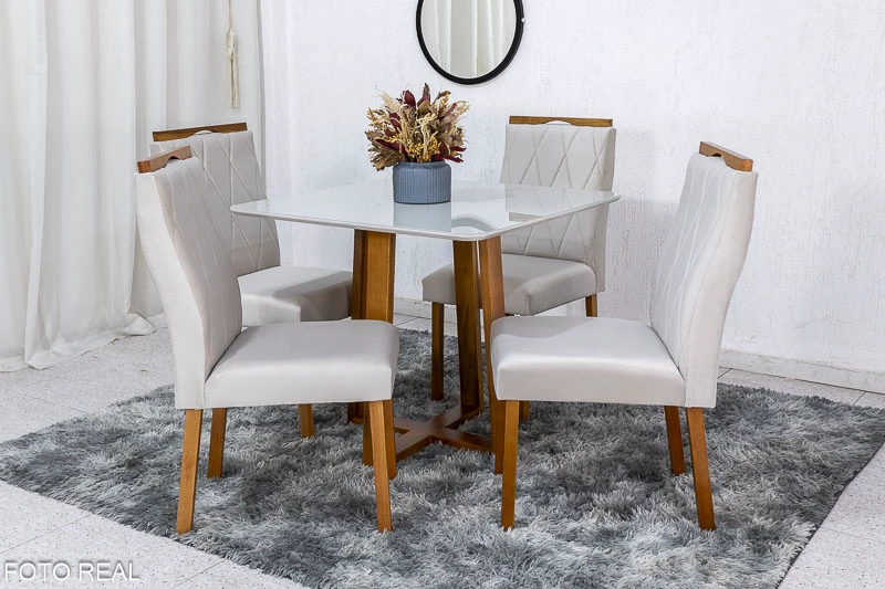 Conjunto Mesa Tubular Rio Branca com 4 cadeiras Tampo Granito Topázio – 0.70×0.70