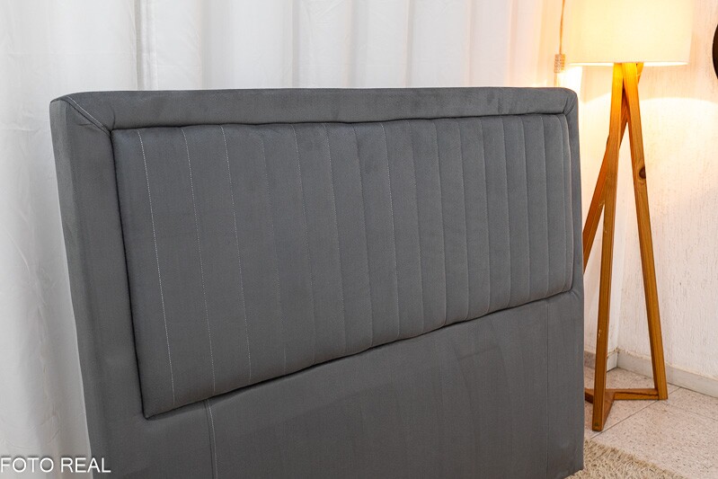 3{%%}Descrição{%%}Cabeceira Casal Cintia Veludo Cinza Larg. 1.40m