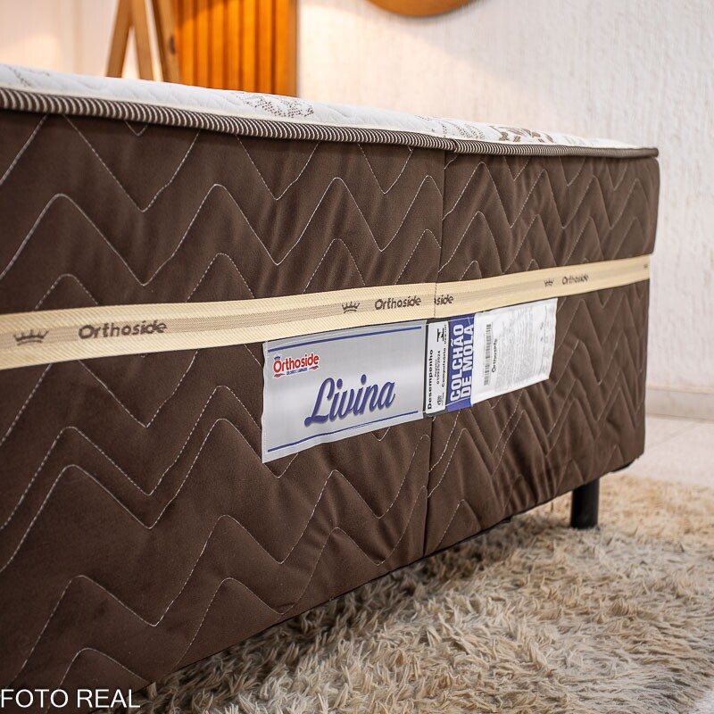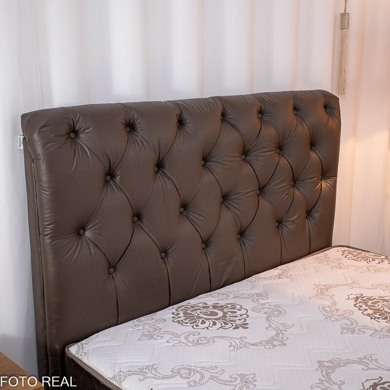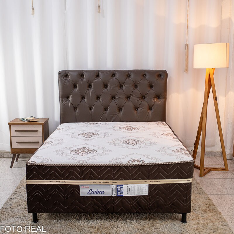 3{%%}Descrição{%%}Cabeceira Casal Lavínia Korino Marrom + Cama Box Casal Livina 138x188x58 Molas Ensacadas | Suporta até 220kg