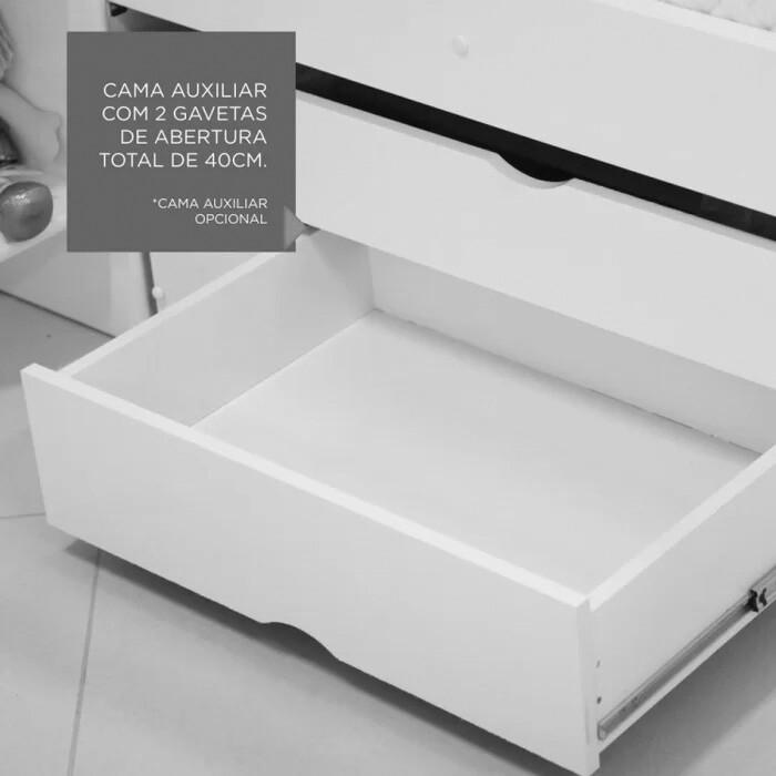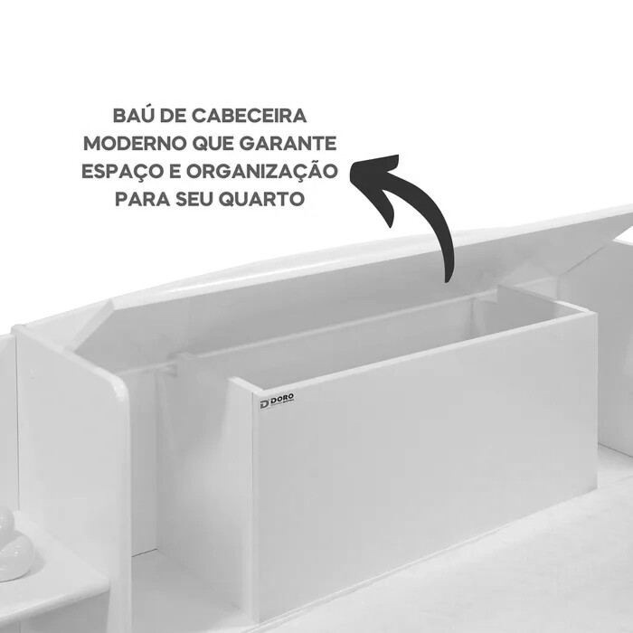 – Cabeceira com baú para melhor aproveitamento do espaço.