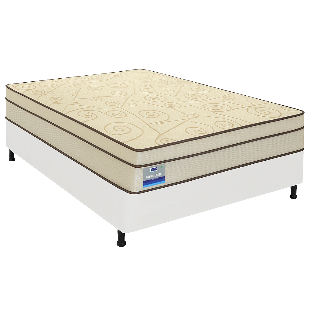 Colchão Casal Prime Light + Base Box Simples Corino Branco – ORTHOPRIME + ALTO NÍVEL CAMAS E COLCHÕES