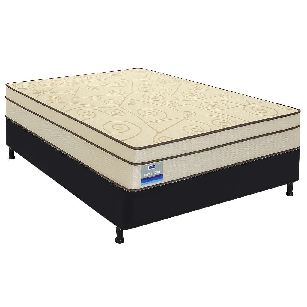 Colchão Casal Prime Light + Base Box Simples Corino Preto – ORTHOPRIME + ALTO NÍVEL CAMAS E COLCHÕES