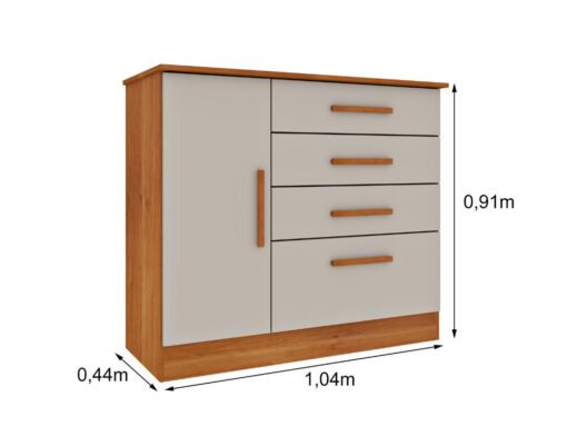 Cômoda Sapateira Chicago 4 Gavetas 1 Porta Tcil – Cinamomo/Off White