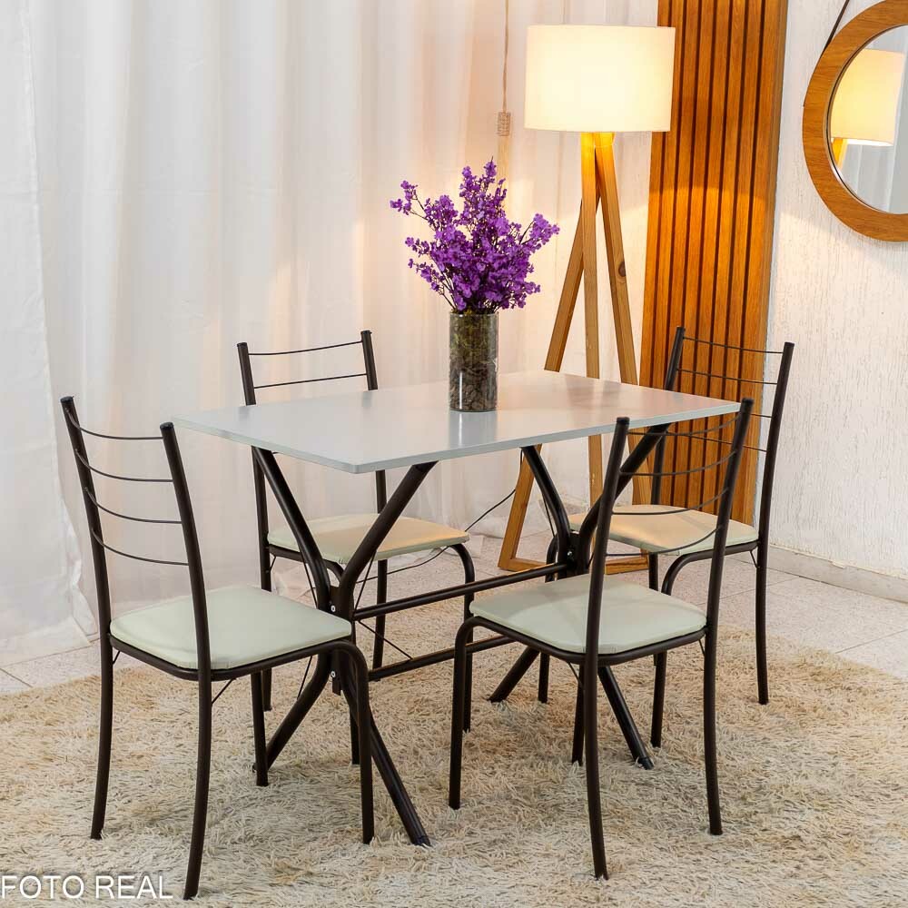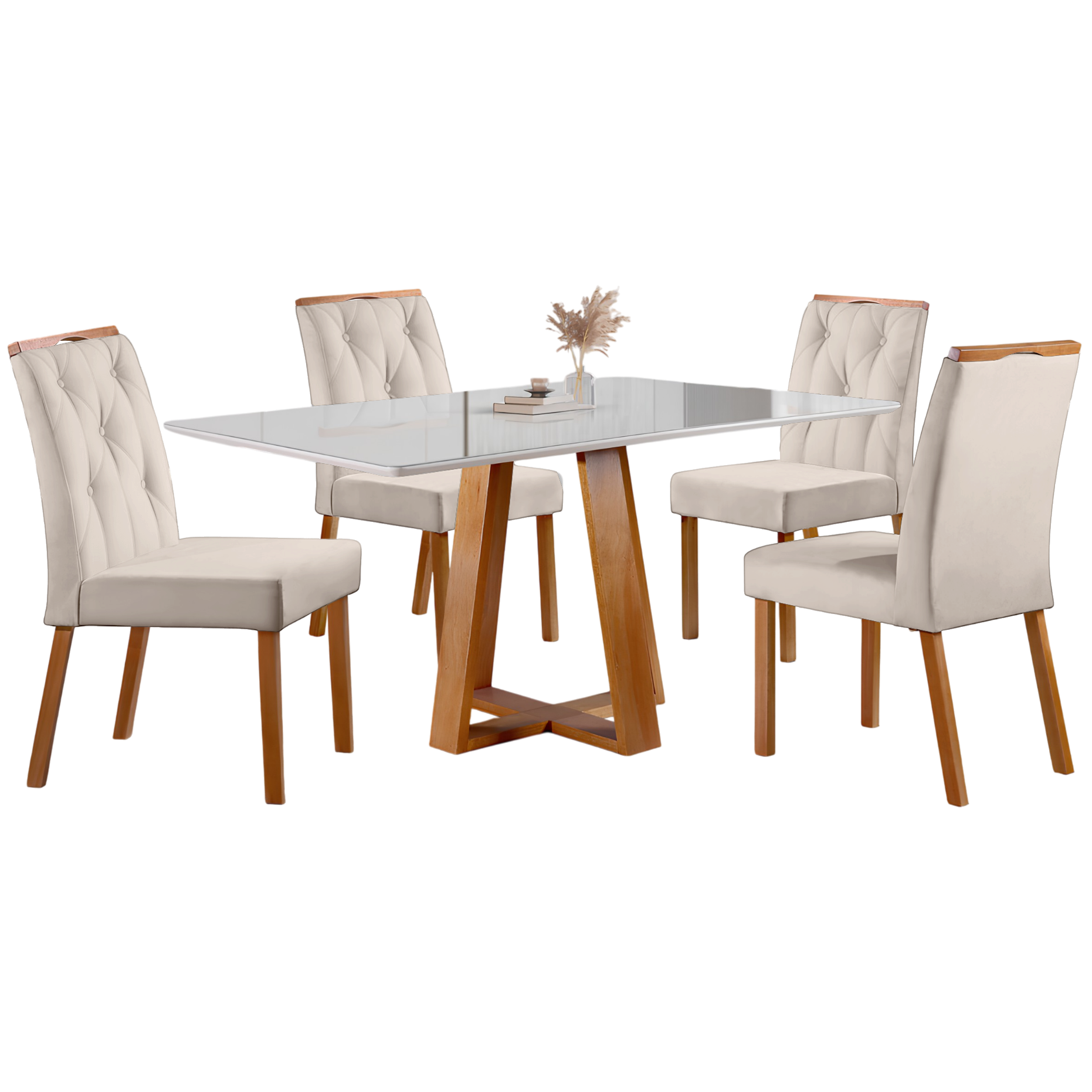 Mesa Ayres 120 Mel/Off White com 4 Cadeiras Yasmim Veludo Bege – VIEIRA DECOR