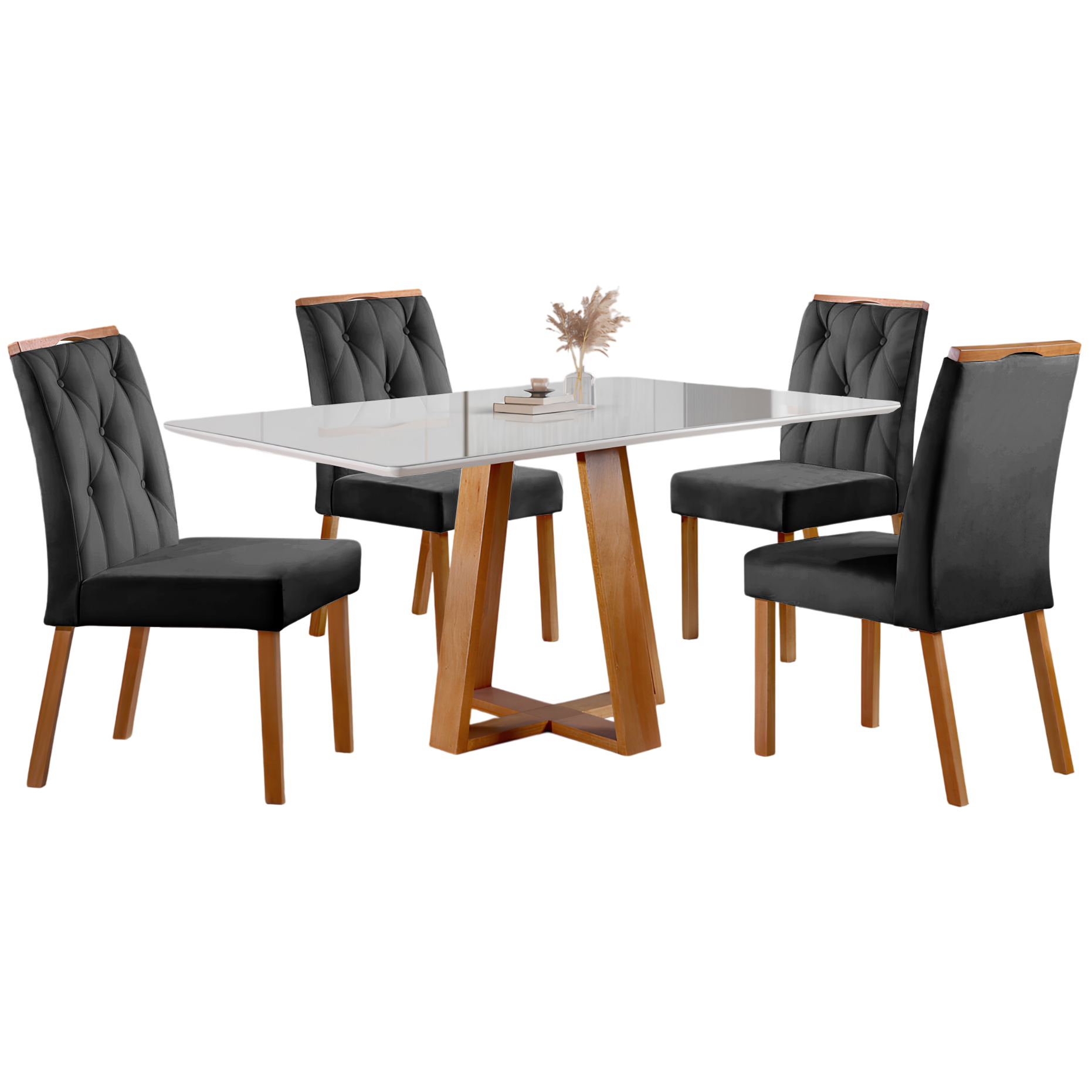 Mesa Ayres 120 Mel/Off White com 4 Cadeiras Yasmim Veludo Preto – VIEIRA DECOR