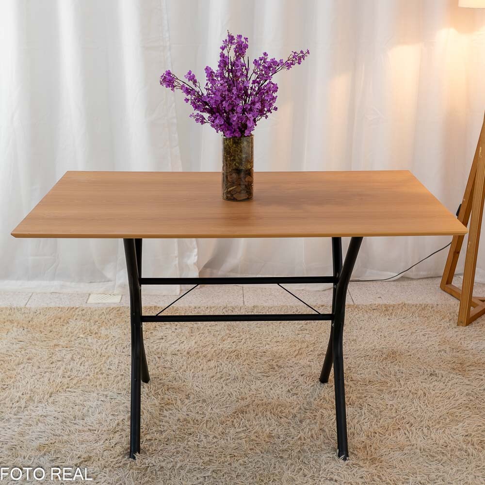3{%%}Descrição{%%}Mesa Paraty Base Cabo Frio Preto Tampo Madeirado 120×75 4 Cadeiras Paraty Assento Marrom – Teixeira