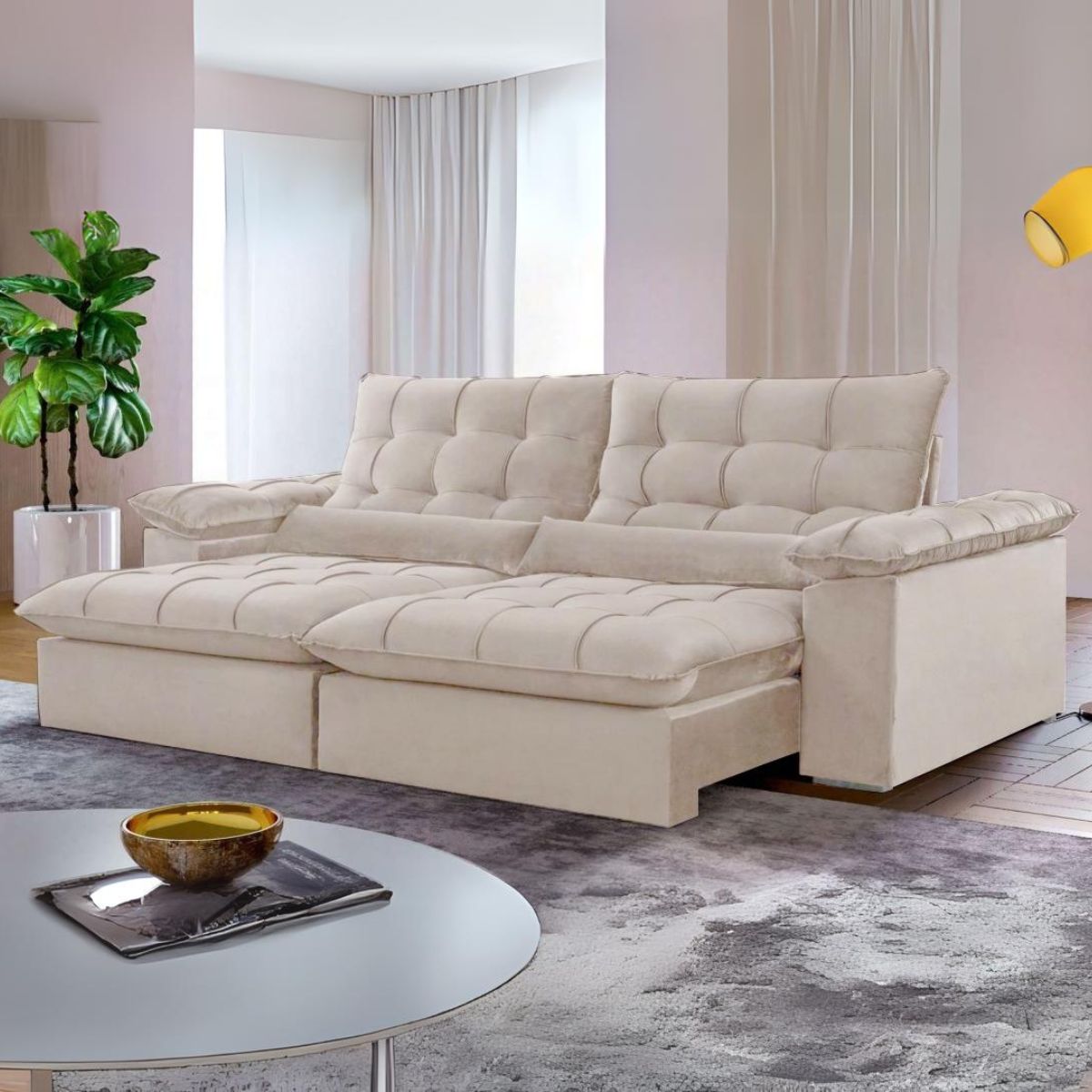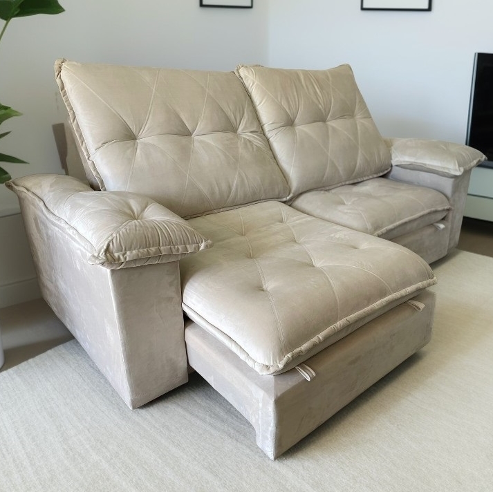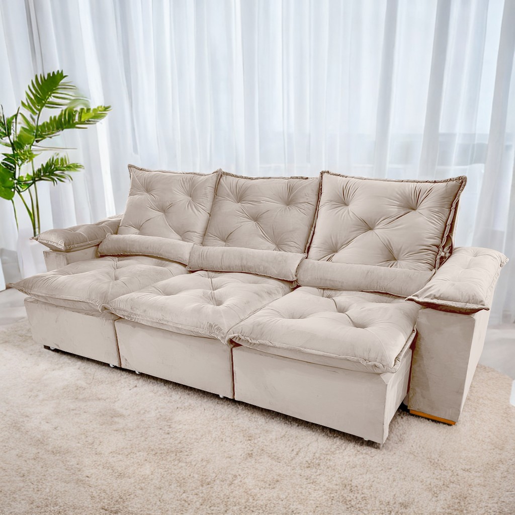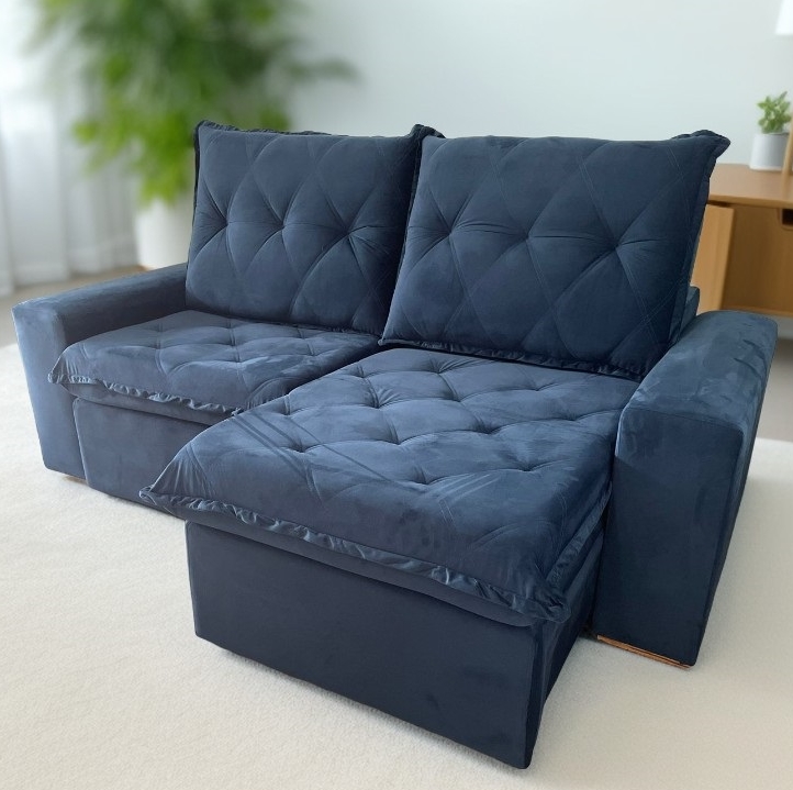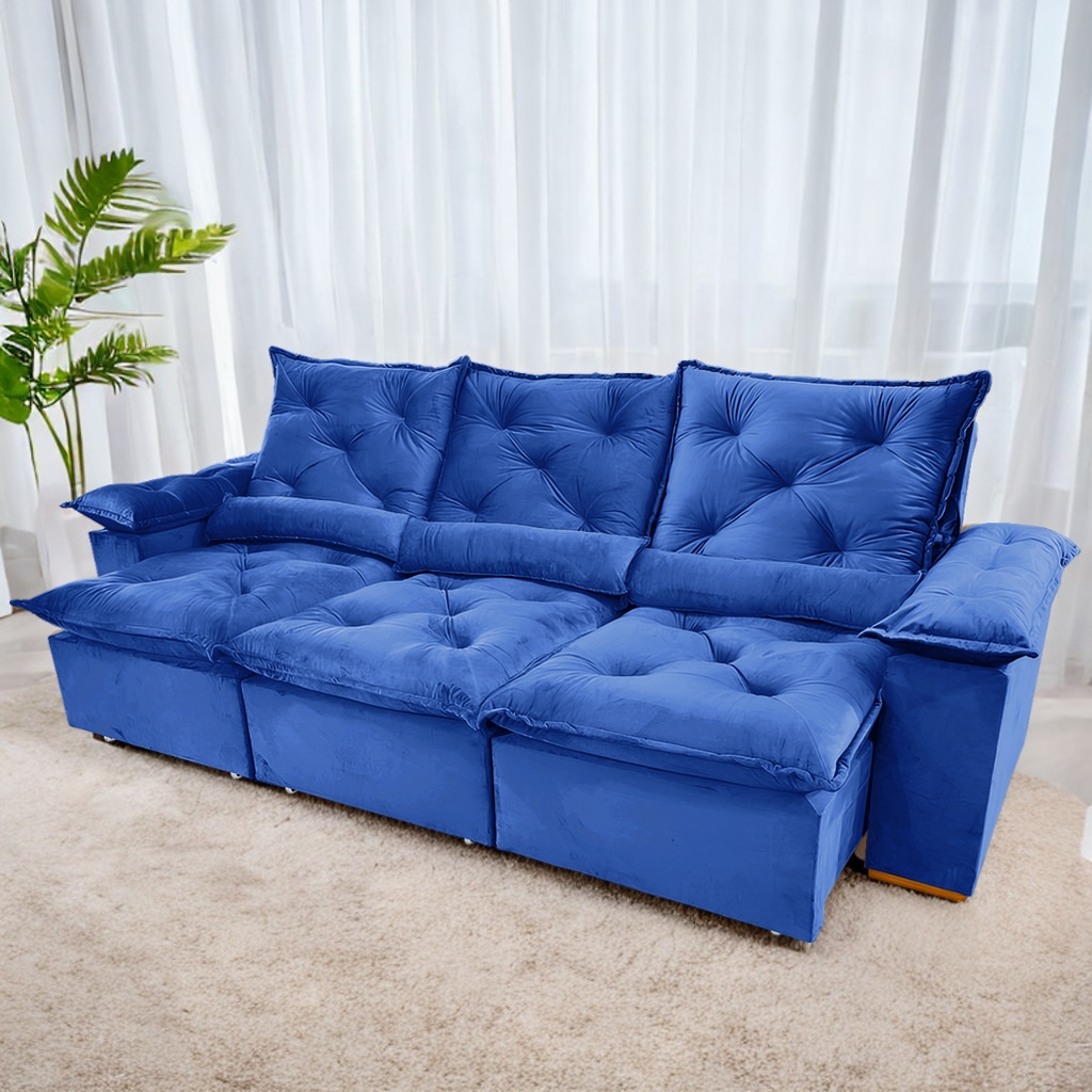 Sofá Retrátil e Reclinável Aquiles/Gran Bello 2,30 m Veludo Preto 111 – ZARAT ESTOFADOS