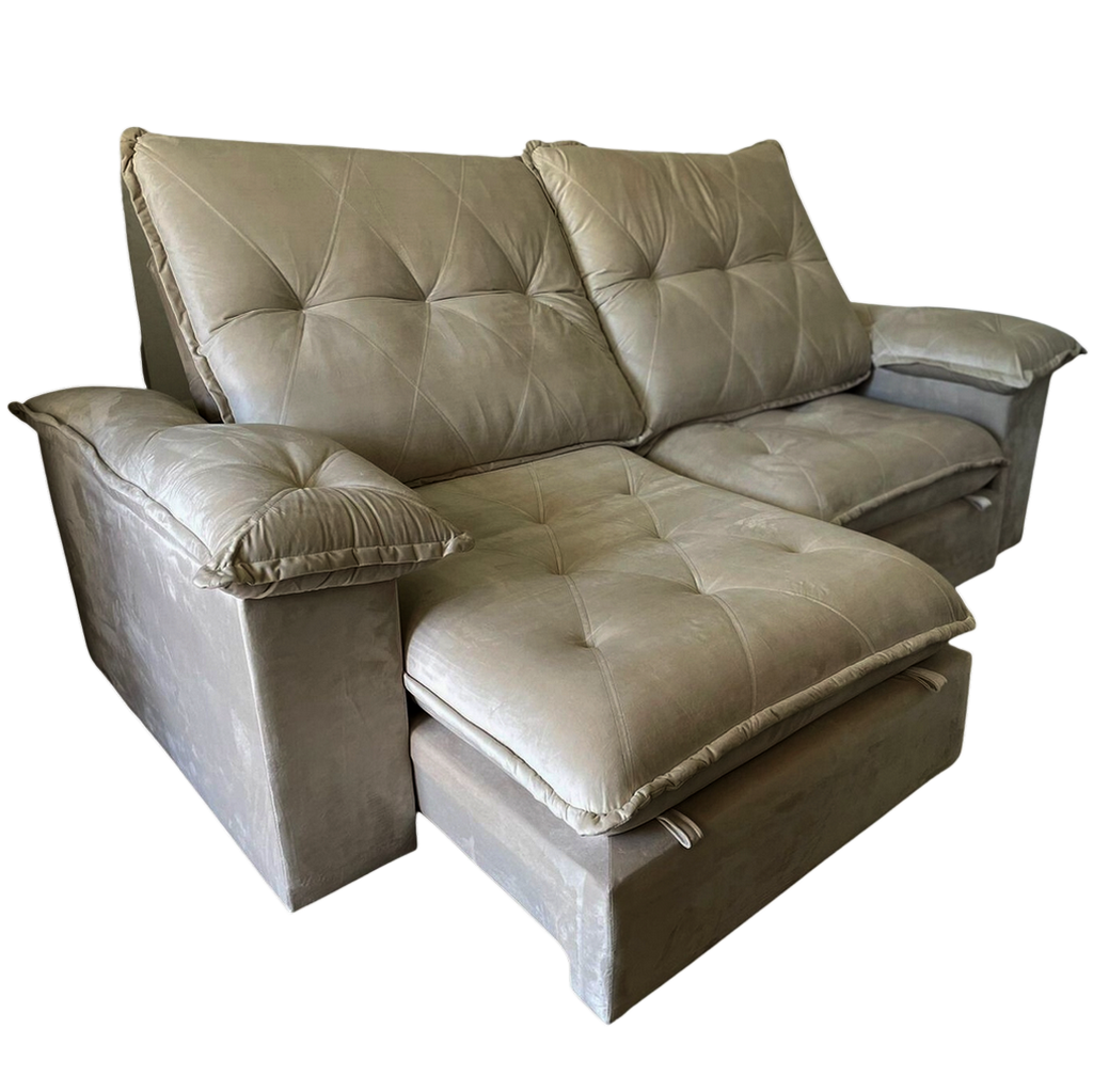 Sofá Retrátil e Reclinável Corvette 2,50 m Veludo Avelã – D’VITRINE ESTOFADOS