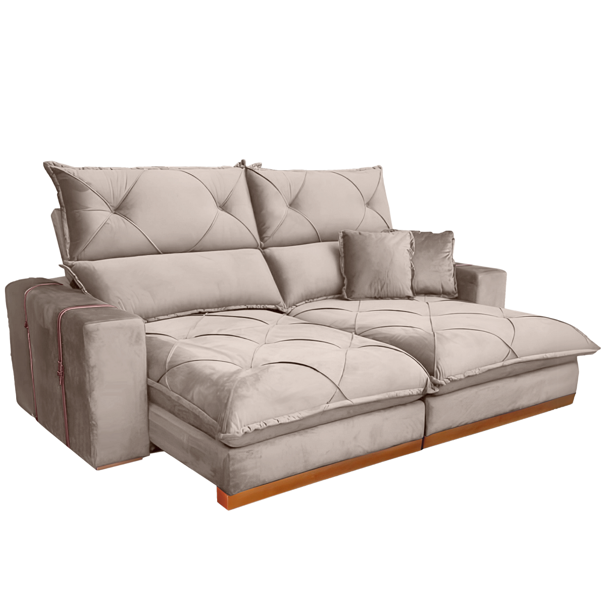 Sofá Retrátil e Reclinável Gran Bello 2,00 m Veludo Bege – QUINE ESTOFADOS
